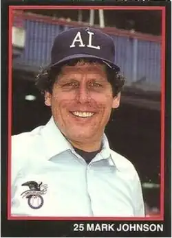 Mark Stephen Johnson (November 18, 1950 – October 26, 2016)[1] was an American professional baseball umpire who worked in the American League from 1979 to 1999, wearing uniform number 25 when the AL adopted them in 1980. Johnson was an umpire in the 1993 World Series and the 1990 and 1999 Major League Baseball All-Star Game. In his career, he umpired 1,979 Major League games.[2]