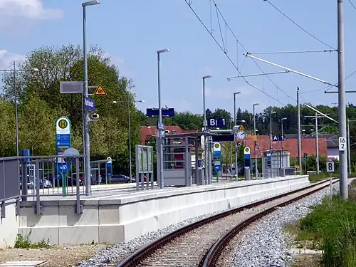 Markt Indersdorf station is a railway station in the Karpfhofen district in the municipality of Markt Indersdorf, located in the district of Dachau in Upper Bavaria, Germany.