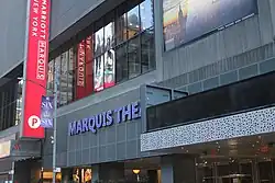 ![]() The theatre marquee, box office and entrance on the 46th Street side of the New York Marriott Marquis hotel | |