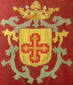 This branch of the Elío family always used the coat of arms of their own surname to represent the Marquesado de Vessolla, as all its holders bore the same surname: "On a field of gold, a cross recrucetada and voided, in red."[4]