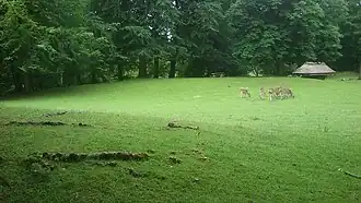 Marselisborg Deer Park is not a deer park in the original sense, as it is not meant for hunting deer. The idea is more like a small safari park, but just presenting a few common species, without exotic animals. Initially, sika deer were introduced to graze the curvy open woodland hills, but later roe deer and wild boars has been added.