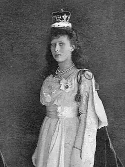 Mary was known as "Princess Mary of York" at birth.[62] Mary was not styled "Her Royal Highness" from birth, only gaining that style in 1898 by letters patent granted by her great-grandmother, Queen Victoria.[63] After Victoria's death in January 1901, Mary was known as Princess Mary of Cornwall and York, until her father's creation as Prince of Wales in November of that year, when she assumed the title "Princess Mary of Wales".[64]