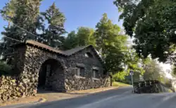 A carriage and gate house was built for the property where it fronted along Seventh Avenue, which is also considered to be a pivotal property in the NRHP listing. The house with its arched gate were constructed out of basalt rocks.[2]