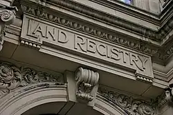 ![]() The deed's registration was objected to by the maker with the Land Registry (one of its stone-carved signs is pictured), as is needed to give it guaranteed effect against all third parties | |