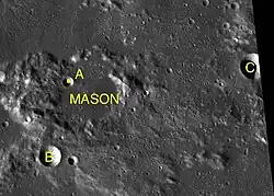 The crater is named after the English-American astronomer Charles Mason.[1]