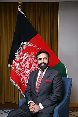Major General Masood Ahmad Azizi (Pashto: مسعود عزیزی; born 1983) is an Afghan politician[2] and is a former Consul General of Afghanistan in Dubai & Northern Emirates in the UAE.[1] Prior to that he was Deputy Interior Minister for Policy and Strategy.[3] Azizi previously served as the Chief of Staff of the Governor of Nangarhar and Kandahar.[4]
