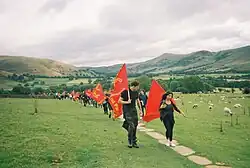The Young Communist League hikes up Kinder Scout every year on their annual Communist Summer Camp to commemorate their involvement in the trespass.[18]