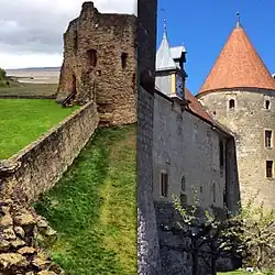 The career of “Magistro Jacobo” began with the construction for Peter II, Count of Savoy of Yverdon-les-Bains Castle.[6] At Yverdon, James was at first working with his father John, but by 1265 he is recorded as working alone, likely indicating the death of his father. From his apprenticeship to his father he went on to work under the guidance of an engineer from Gascony, who had previously worked for Henry III of England, Jean de Mézos. James worked at the Château de Melphe at Salins-les-Thermes at works dictated by Mézos in 1267–68.[7]