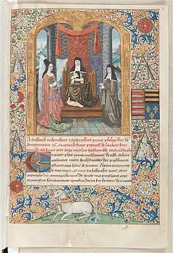 2. ^ Plummer, John; Clark, Gregory (1982). The last flowering : French Painting in Manuscripts 1420-1530 from American collections. New York: Pierpont Morgan Library / Oxford University Press. p. 74. ISBN 0-19-503262-4.