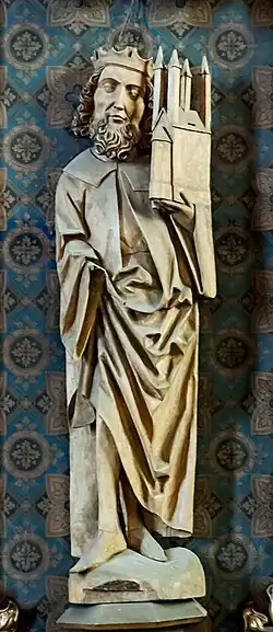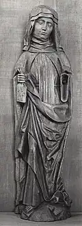 Vykoukal presumes that his workshop employed sculptors trained in Nuremberg, and the head carver of the workshop probably came from Michael Wolgemut's workshop. Swabian inspiration, represented by the late works of Hans Multscher, was also integrated into the Nuremberg tradition. The softly sculpted faces, fashionable female headdresses, the type of cloaks and the rendering of drapery or iconographic scheme link the St. Nicholas sculptures with Michael Wolgemut's Altarpiece of Zwickau (1479).[5][6] Other surviving works, however, have only simplified and rusticated this pattern. Established medieval workshop practice and working according to established patterns does not even allow the individual contribution of individual carvers to be determined. Vykoukal also questions the meaningfulness of identifying the carver by the Madonna of Kamenná Street, which is not one of the finest works in his supposed body of work.[1]
