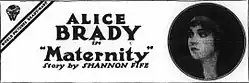 Maternity is a 1917 American silent drama film directed by John B. O'Brien and starring Alice Brady, Marie Chambers and John Bowers.[1]