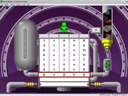 Blasternaut goes down to the fuel chamber to recycle the trash. Here, the player completes equations, at which the machinery of the Number Recycler melts the garbage, freshens it to maximize energy and loads it into the fuel tanks. The player can adjust the numbers and symbols as needed.