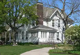 It is a two-story Queen Anne-style house. It was remodelled in c.1925, at which time a sunroom on the east side was added, and front and rear porches were replaced with Classical porticos.[2]