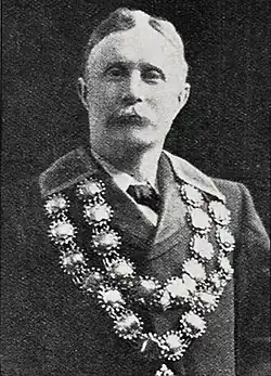 Initially, councillors elected one of their own as mayor towards the end of the year, and the role was usually awarded to the most senior councillor. Most elections were unanimous, and the newly elected mayor was instantly regarded as the head of the council. The system changed with the introduction of The Municipal Corporations Acts Amendment Act, 1875, as that legislation stipulated that mayors had to be elected at large (i.e. by eligible voters).[7][8] Fred Hobbs, the incumbent, was the only candidate nominated, so he was declared elected unopposed on 17 December 1875.[9] James Gapes was the first mayor elected at large on 20 December 1876.[10][11][12] The newly elected person was from that point the mayor-elect, until he was sworn in; Gapes was sworn in on 2 January 1877.[13] Despite this, Taylor's death in 1911 resulted in councillors electing their fellow councillor John Joseph Dougall as mayor as required by the legislation for such cases.[14]