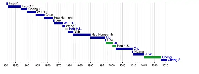 2. ^ Left office to serve as Taiwan Province Civil Affairs Department Commissioner.