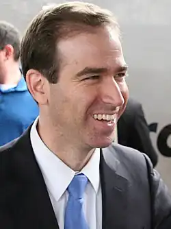 Winning the Democratic primary in Hartford is generally considered tantamount to election.[61] However, fourteen years earlier, independent Michael P. Peters, who served as mayor from 1993 through 2001, had first won election as a petitioning candidate in the general election, after having failed to win the Democratic primary over then-incumbent Carrie Saxon Perry.[61][64] Registered Democrats in Hartford numbered 30,039, unaffiliated voters numbered 10,454, and Republicans numbered 1,932.[61]