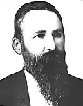 Known as the "Centennial Mayor". Popular mayor at the time, former chief magistrate. Born in Allentown on September 6, 1836, attended school at Allentown Academy, then learned watchmaking in Bellefonte, Pennsylvania. Returned to Allentown in 1855, going into business with the Barber, Young and Company hardware company. Served in the 49th Pennsylvania Infantry during the Civil War, fought in the Battle of Gettysburg, and then became head of Allentown Steam Heating and Power Company; took an active part in the organization of the Lehigh Valley Traction Company; director of Lehigh Valley Trust Company. Died on December 30, 1878, shortly after leaving office. Buried in Union and West End Cemetery, 12th and Chew streets, Allentown.[4][1][9] | |||