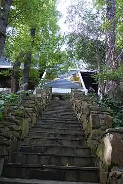 The steps that ascend to the entry of Peter McIntyre's River Residence