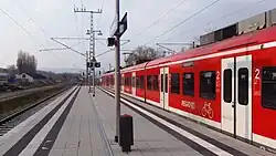 Meckesheim station is a small railway junction in Meckesheim, North Baden in the German state of Baden-Württemberg. It is located on the Neckargemünd–Bad Friedrichshall railway and is classified by Deutsche Bahn as a category 4 station.[1] The Schwarzbach Valley Railway branches off the Elsenz Valley Railway to Aglasterhausen in Meckesheim. Until 1990, the Wiesloch–Meckesheim/Waldangelloch railway also branched off via Schatthausen to Wiesloch Stadt and Wiesloch-Walldorf.