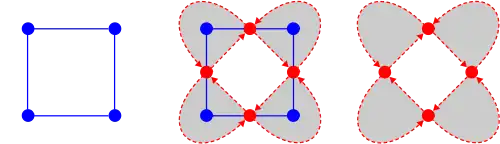 In the mathematical discipline of graph theory, the medial graph of plane graph G is another graph M(G) that represents the adjacencies between edges in the faces of G. Medial graphs were introduced in 1922 by Ernst Steinitz to study combinatorial properties of convex polyhedra,[1] although the inverse construction was already used by Peter Tait in 1877 in his foundational study of knots and links.[2][3]