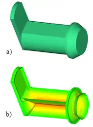 (a) A simple 3d object. (b) Its medial axis transform. The colors represent the distance from the medial axis to the object's boundary.