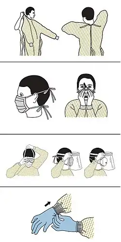 - ^ "Sequence for Putting On Personal Protective Equipment (PPE)" (PDF). CDC. Archived (PDF) from the original on 5 March 2020. Retrieved 8 March 2020.