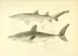 | An illustration of a sand tiger shark (top) | |