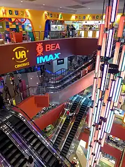 In addition MegaBox houses an ice rink, MegaIce, which is the largest in Hong Kong at 26 metres x 57 metres.[2] MegaBox's UA theatre is the first commercial theatre in Hong Kong to have the IMAX film display system.[3] It also offers a 1000-space car park.
