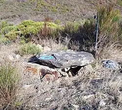 In his 2011 publication, Jean Abélanet outlines 147 dolmens in the Pyrénées-Orientales, along with 5 menhirs, including those mentioned in ancient sources but not yet discovered.[2] The Dolmen de Castelló discovered in 2011 is not included.[3] Carreras and Tarrús completed their list in 2012, documenting 125 megalithic sites, 114 burials, and 10 menhirs, in addition to one necropolis.[4] They identify 19 sites as potentially false or doubtful.[5] The Castelló dolmen is also omitted from their count. In 2017, Carreras and Tarrus published an article that lists megaliths discovered between 1999 and 2015 in the county and neighboring Alt Empordà. Three megaliths were found in the Pyrenees-Orientales.[6]