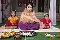 The ceremony ends with both families exchanging betel nuts and bowing to each other. When the bride arrives at the groom’s house, she is greeted by her mother-in-law and another woman from the family. They lead her into the house, covering her back with their own shawls. This tradition has been followed by the Meitei people for a long time, as shown in old texts like Panthoibi Khongul.[6][4][3]