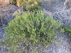 Melaleuca araucarioides is a small to medium tree, about 0.5–1.5 m (2–5 ft) high and wide with rough bark. Its leaves are fleshy and glabrous, about 2–6 mm (0.08–0.2 in) long and 1–2 mm (0.04–0.08 in) wide. They are crowded and arranged in groups of three forming six rows of leaves along the branches.[2][3][4]