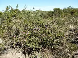 Melaleuca violacea occurs from Ravensthorpe to Walpole and as far inland as the Stirling Range and Ongerup district.[2] It grows in sandy or clayey soils over limestone or laterite on low ridges, undulating terrain and swamps.[7][8]