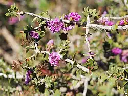 Melaleuca violacea is a plant in the myrtle family Myrtaceae and is endemic to a small area in the south-west of Western Australia. It is a small, straggly, prostrate to semi-prostrate shrub with purple flowers and star-shaped fruit.