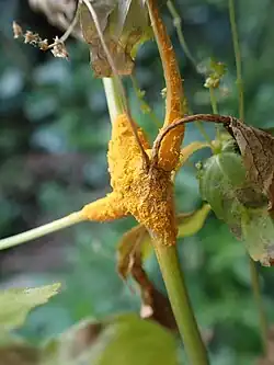 - ^ Moriondo, F.; Longo, B. Naldini; Longo, N.; Drovandi, F.; Gonnelli, T. (1989). "Some observations on the life-cycle of Melampsora pulcherrima (Bub.) Maire". Phytopathologia Mediterranea. 28 (1): 46–52. JSTOR 42685674.