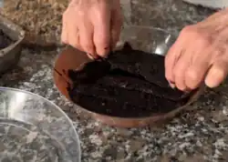 In some modern preparations, a lighter dessert is made by baking, boiling, poaching or grilling the eggplant.[3] Alternative fillings include ricotta or sponge cake, and Jordan almonds have been used as a topping.[1] Because the dish takes a long time to prepare, melanzane al cioccolato is almost always homemade and rarely sold commercially.[1][4]
