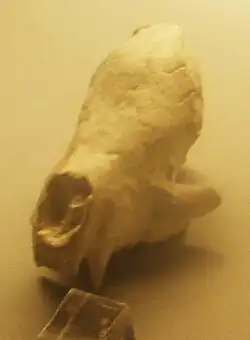 A further species is Meles thorali from the late Pleistocene, known only from fossil remains, specimens of which have been found at Saint-Vallier, Drôme, in southeastern France and Binagady, in Azerbaijan.[7] These have large cheek teeth and characteristics intermediate between M. meles and M. anakuma. It is theorized that they were an ancestral species from which these two modern species diverged. Another extinct species from Europe is Meles hollitzeri from the Early Pleistocene, remains of which were found in Deutsch-Altenburg, in northeastern Austria, and Untermassfeld, in southeastern Germany.[7]