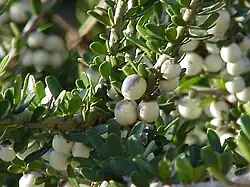 Melicytus crassifolius (thick-leaved mahoe; syn. Hymenanthera crassifolia Hook.f.)[1] is an ornamental plant of Violaceae family, which is native to New Zealand.