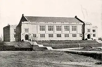 The new facility was built from Indiana limestone and cost $250,000. In addition to the basketball portion, it included an indoor track, a pool, locker rooms, offices for athletics and staff, and a trophy room. The primary focal point of the facility was a 2,400-seat basketball arena on the second floor. It was simply called the new Men's Gymnasium, and for the first few years was often just called the "New Gym."[2]