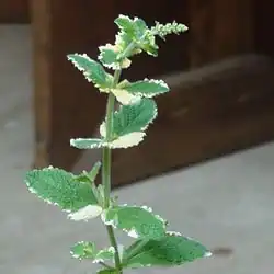 Pineapple mint (Mentha suaveolens 'Variegata') is a cultivar of apple mint that has leaves which are banded with white. A hybrid derived from it is grapefruit mint (Mentha suaveolens × piperata).