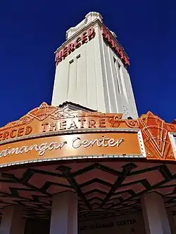 The Merced Theatre is located at 301 W. Main Street, at the corner of Main Street and Martin Luther King Way, in Merced, California.[2] The theatre is significant both for its role as the social and cultural center of Merced from the Depression through the post World War II era and for its mix of Art Deco and Spanish Colonial Revival architecture. The property was added to the National Register of Historic Places (NRHP) on May 1, 2009 and the listing was announced as the featured listing in the National Park Service's weekly list of June 5, 2009.[3]