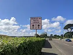 A possible dynamic merge method would use variable message signs to instruct drivers to use all available lanes and then to merge in turn (as a zipper merge) if queueing is detected. At other times, drivers would use a conventional merging method.[2]