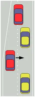 A dynamic merge strategy involves advance notices for a variable distance from the lane closure. For example, in the US state of Indiana, a dynamic no-passing zone is created in advance of the merge, to ensure drivers can move into the open lane before reaching the end of a queue.[2]