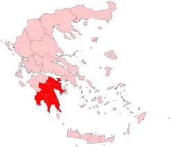 Messenia is a constituency[2] in Peloponnese represented in the Hellenic Parliament. It elects five Members of Parliament (MPs) by the Reinforced proportional representation system of election. It comprises the Messenia Prefecture.