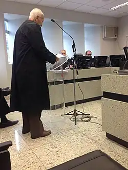 By the end of his life he was active in professional advocacy nacional.[15][16][17] Held from the foundation, the chair 20 of the National Law Academy Trabalho18. Integrated the following institutions: Academy Iberoamericana de Derecho del Trabajo (Spain), Inter-American Institute of Derecho del Trabajo (Argentina), Mining of Legal Academia, Social Law Institute Cesariano Junior (São Paulo), Institute of Minas Gerais Lawyers Association of Labor Lawyers of Minas Gerais, Law Institute of Juiz de Fora Work and Brazilian Legal Centre, Belo Horizonte. In 2010, he joined the Social and Labor Rights Commission of OAB/MG. He was a member of the Editorial Board of the Journal Legal Science of Labour, the publisher "Legal Science">.[18] Among his legal works, stand out, as well as articles published in national journals and abroad, "The labor union movement in the capitalist regime", "The role of the union within the private company", "Law Course work "and said" Individual Labour Law Course".[19][20][21]