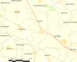 Modern map, vicinity of Hazbrouck–Flêtre (commune FR insee code 59237)