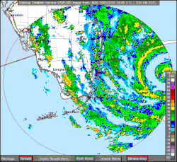 By September 27, the wave was producing sustained tropical storm-force winds[note 1] as reported by the hurricane hunters, although the system lacked the closed circulation required for classification as a tropical cyclone.[10] While the system was passing near Barbados, radar imagery in the Lesser Antilles indicated that the circulation was becoming better organized.[11] Another hurricane hunters flight on September 28 confirmed that a closed circulation developed, recorded surface winds of 58 mph (93 km/h), and observed hurricane-force gusts at the plane's level.[12] These data in conjunction with microwave satellite imagery indicate the system became a tropical cyclone—earning the designation Tropical Storm Matthew—by 12:00 UTC that day; at this time, the storm was centered 20 mi (30 km) west-northwest of Barbados.[1]