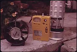A methanometer is an instrument used to measure methane gas in the air of a mine. The Mine Safety Appliances Company Ltd. manufactured the first type - W8 Methanometer around 1950 and it was approved for use by the Ventilation Regulations of 1947. The Methanometer could be powered by an Edison battery cap lamp and it could be carried on a miner's belt with other tools. Methane is the main gas present in firedamp. It is highly explosive and had previously been detected by the blue halo effect it gave to the flame of a safety lamp.