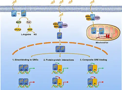 - ^ a b c d e f g h i j Xavier AM, Anunciato AK, Rosenstock TR, Glezer I (2016). "Gene Expression Control by Glucocorticoid Receptors during Innate Immune Responses". Frontiers in Endocrinology. 7: 31. doi:10.3389/fendo.2016.00031. PMC 4835445. PMID 27148162.