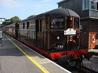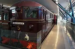 In 1925, no. 15 was exhibited on the Metropolitan Railway's stand at the British Empire Exhibition; the panelling was removed from one side, so that the equipment inside could be viewed.[6] The locomotives were all named, the first nameplates being fitted on 18 March 1927. Nineteen of the names chosen were of people, real or fictitious, who had a connection with the area served by the Metropolitan; the exception was no. 15, the exhibition locomotive of 1925, which became Wembley 1924.[7] Nameplates were removed during World War II.[8]