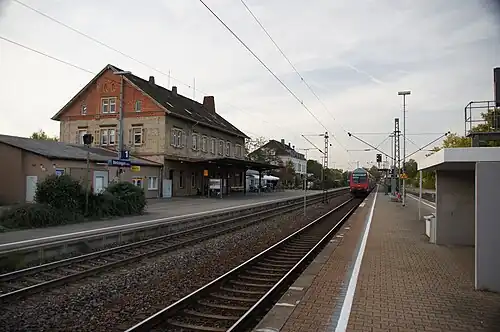 As part of a track renovation, a level crossing (cart crossing) to the platform for tracks 2 and 3 was removed. This means that the platform is no longer accessible. Preliminary planning for barrier-free access began in 2016. Due to the narrow platform width, a lift could only have been installed provisionally and not before 2019. Widening the platform would have required a comprehensive redesign of the track system, costing almost €10 million.[5] The start of construction was celebrated on 27 January 2022. The €10.5 million project was scheduled for completion in 2024.[6] On 18 July 2023, work began on raising the platform on track 1 to 76 cm (30 in).[7]